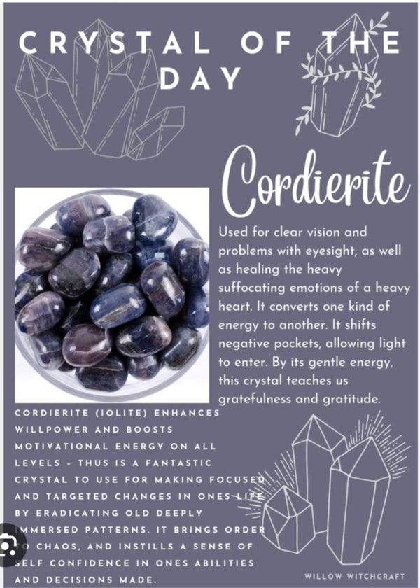 Lolitul este cunoscut ca piatra viziunii interioare și a intuiției. Se spune că stimulează claritatea mentală, încrederea în sine și capacitatea de a lua decizii echilibrate.