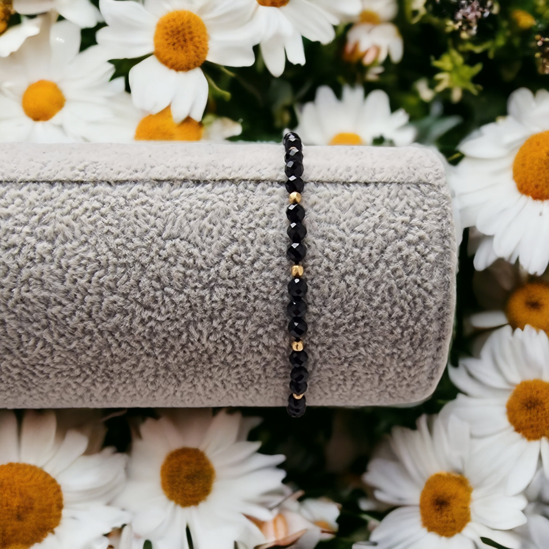Adjustable black cord bracelet with 14k gold filled faceted seam beads (2mm-8 Beads) and onyx stones