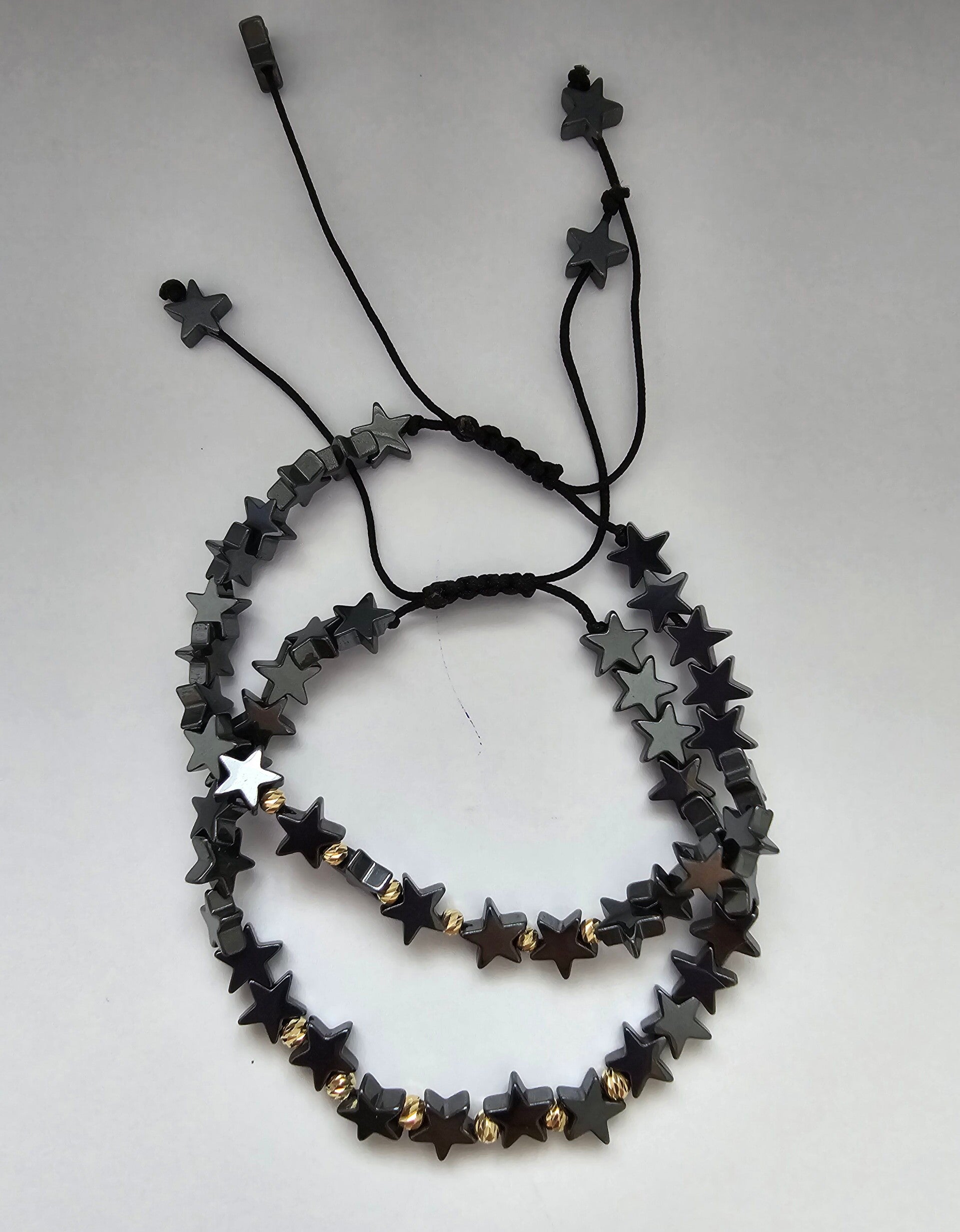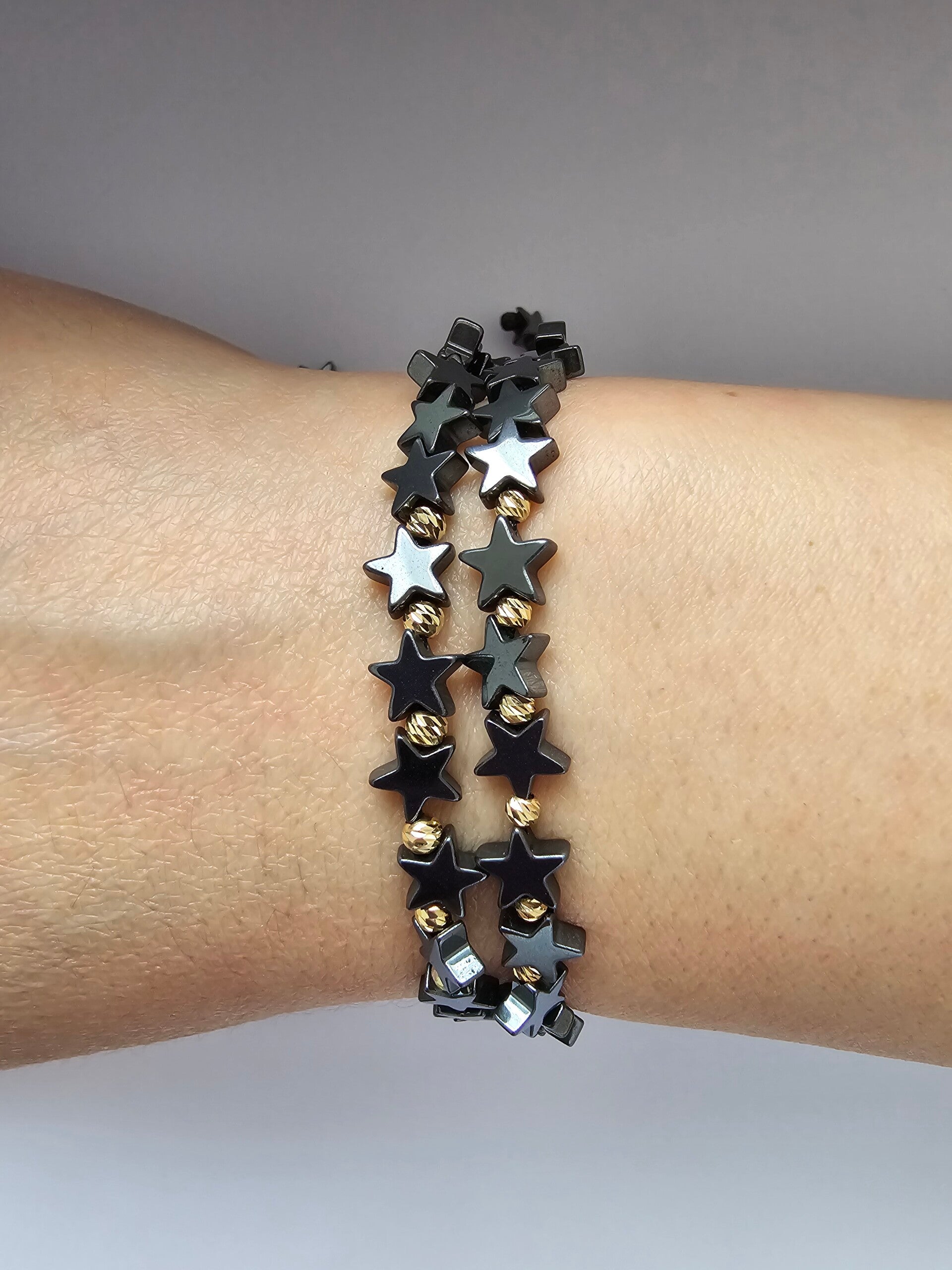 Bratara cu pietre Hematit Steluta si 6 bilute aur 14k
