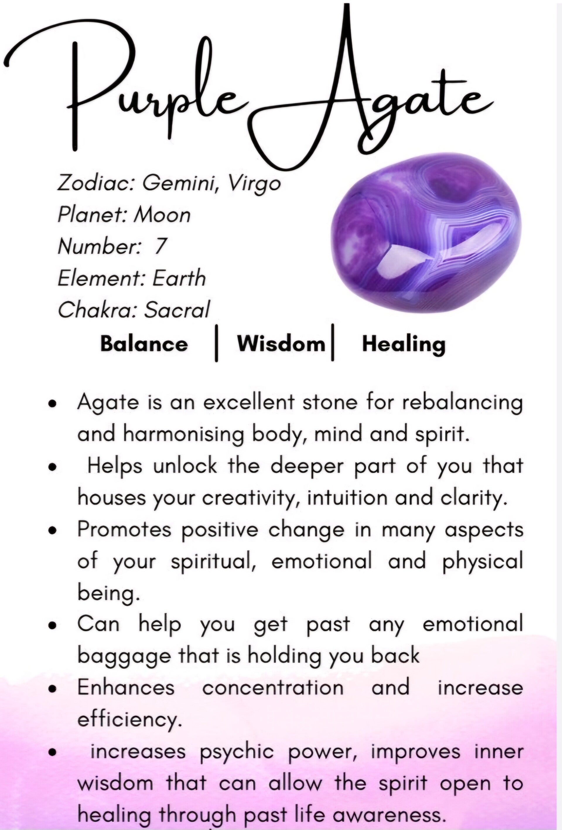 Se spuna ca Agatul Mov ofera claritate mentala, protectie si liniste sufleteasca.
