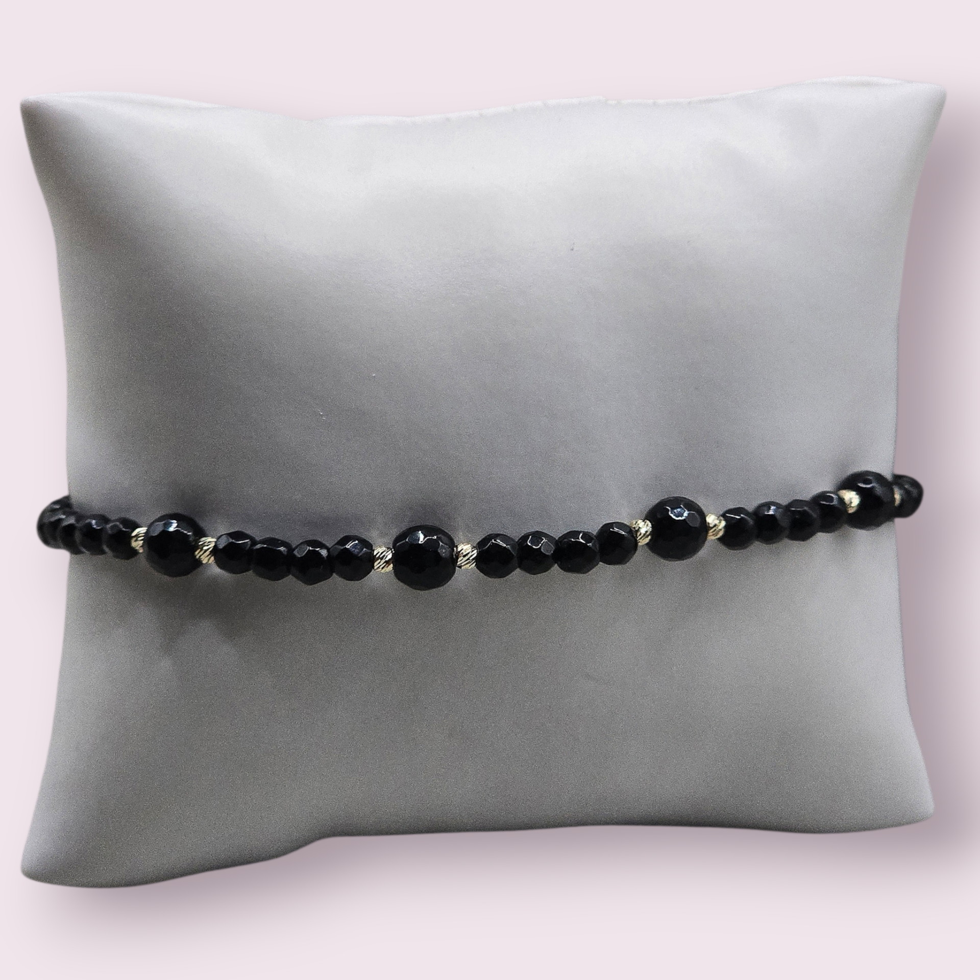 Bratara cu pietre Onix Negru Fatetat si 8 bilute aur 14k